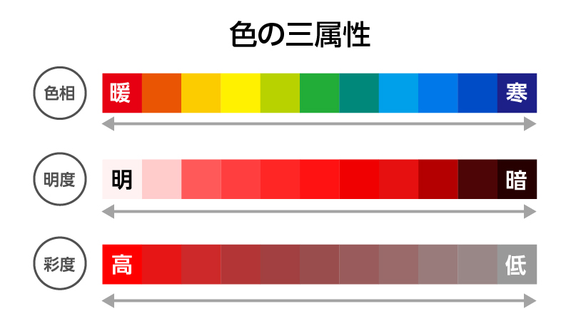 色は、色相・明度・彩度の3つの属性で区別されます。